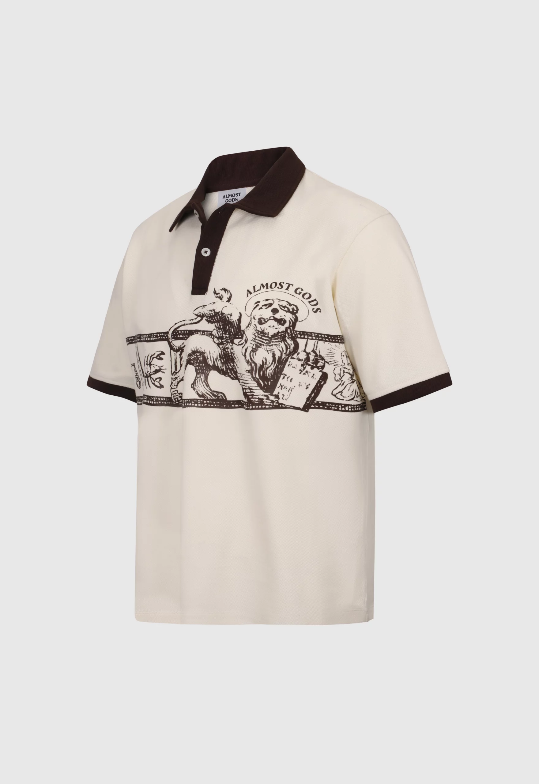 Rib knit relaxed fit polo featuring the Zodiac graphic in front.
